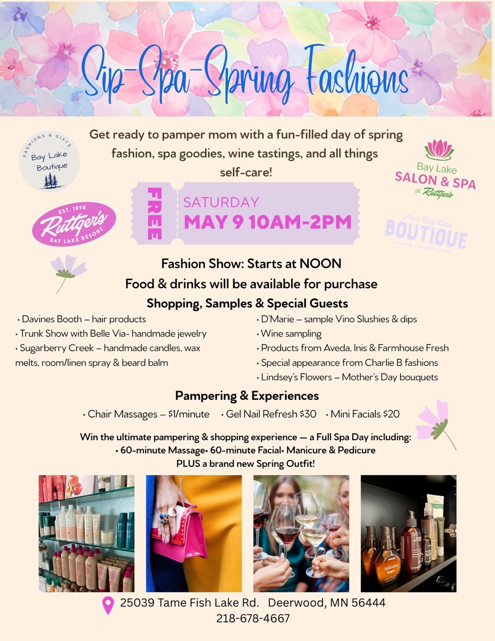 Get ready to pamper mom with a fun-filled day of spring fashion, spa goodies, wine tastings, and all things self-care!